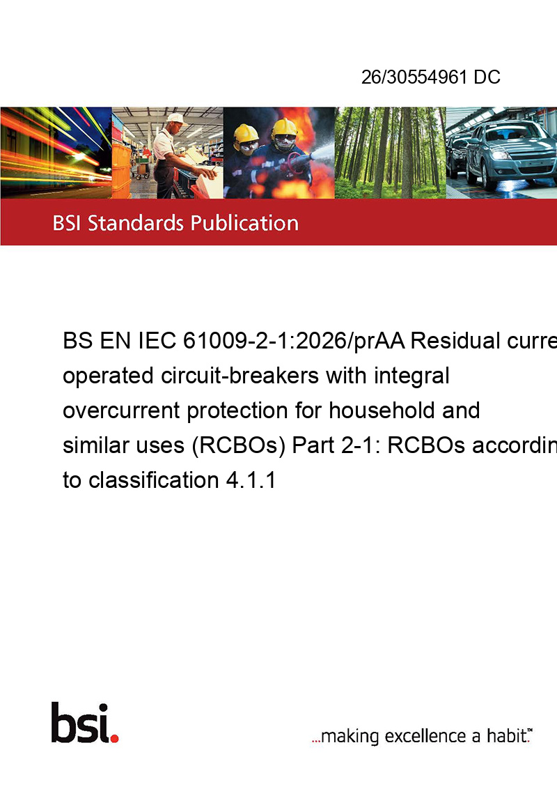 BS EN IEC 61009-2-1:2026/prAA Residual current operated circuit-breakers with integral overcurrent protection for household and similar uses (RCBOs) Part 2-1: RCBOs according to classification 4.1.1