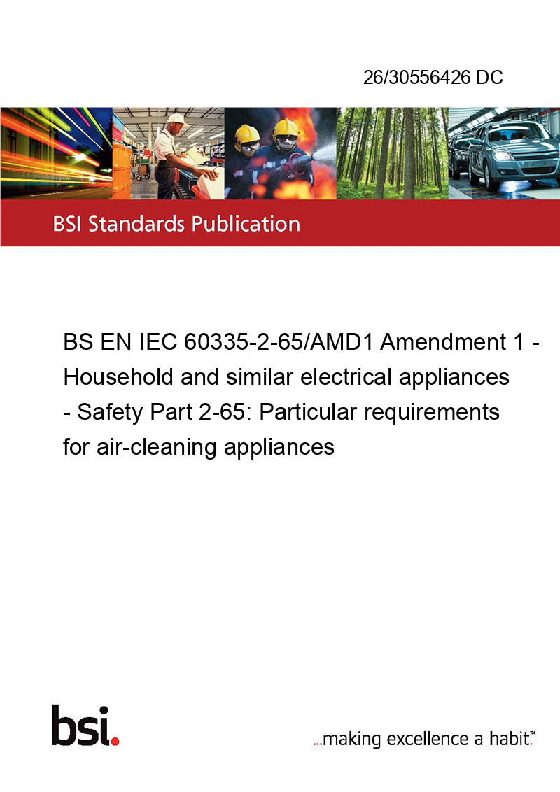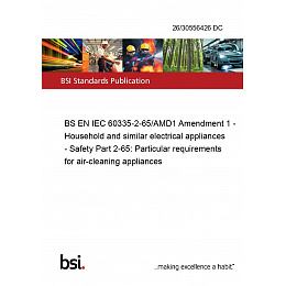 BS EN IEC 60335-2-65/AMD1 Amendment 1 - Household and similar electrical appliances - Safety Part 2-65: Particular requirements for air-cleaning appliances