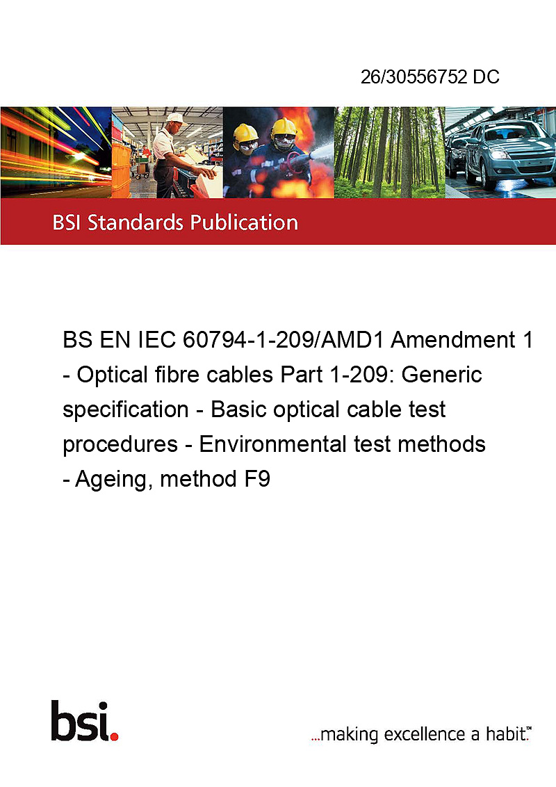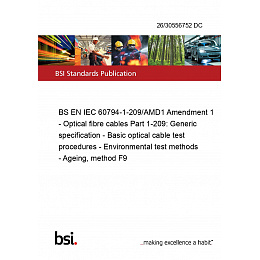 BS EN IEC 60794-1-209/AMD1 Amendment 1 - Optical fibre cables Part 1-209: Generic specification - Basic optical cable test procedures - Environmental test methods - Ageing, method F9