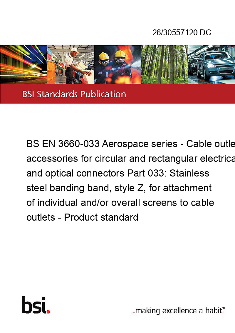 This standard 26/30557120 DC BS EN 3660-033 Aerospace series - Cable outlet accessories for circular and rectangular electrical and optical connectors is classified in these ICS categories:
