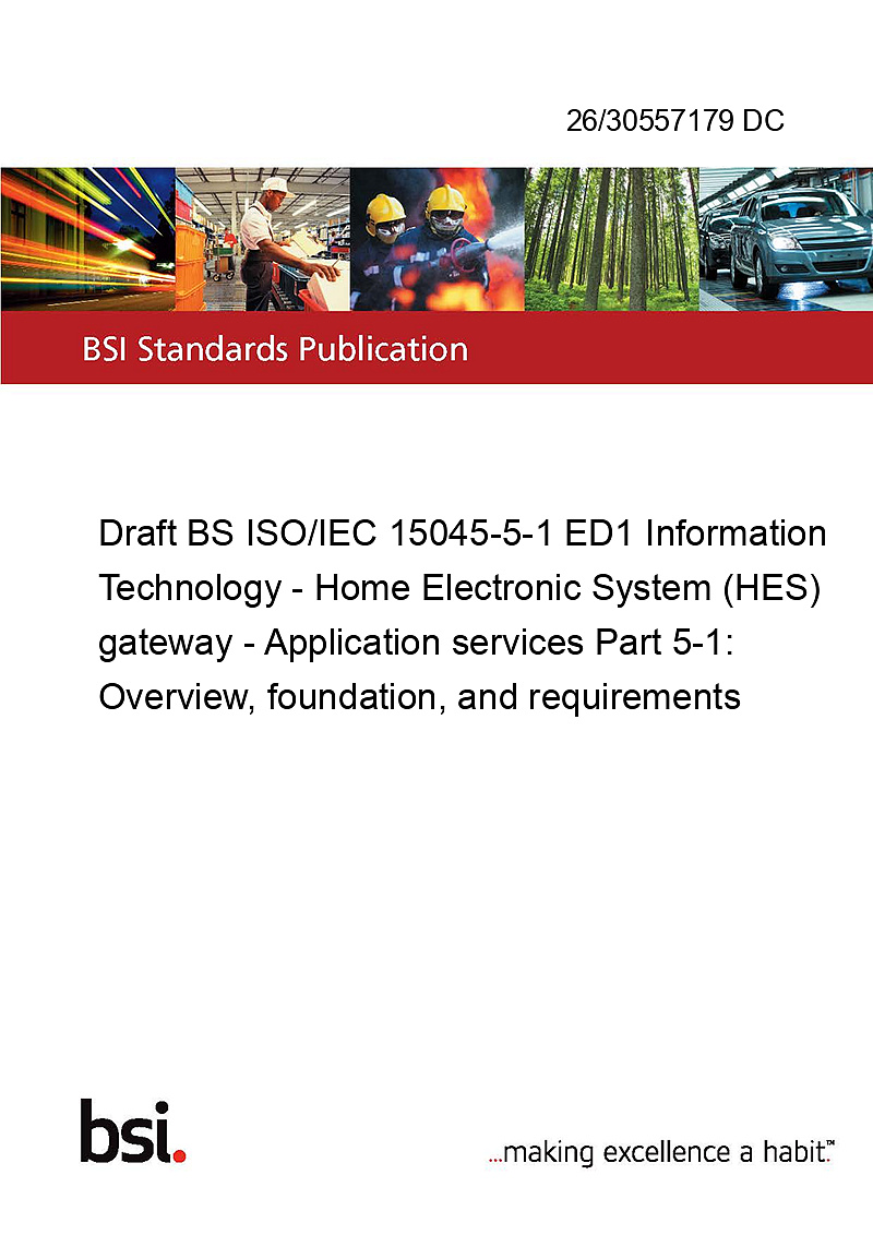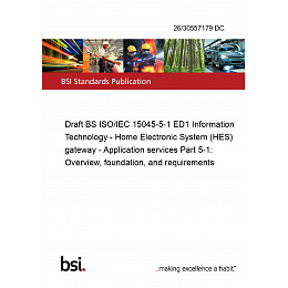 Draft BS ISO/IEC 15045-5-1 ED1 Information Technology - Home Electronic System (HES) gateway - Application services Part 5-1: Overview, foundation, and requirements