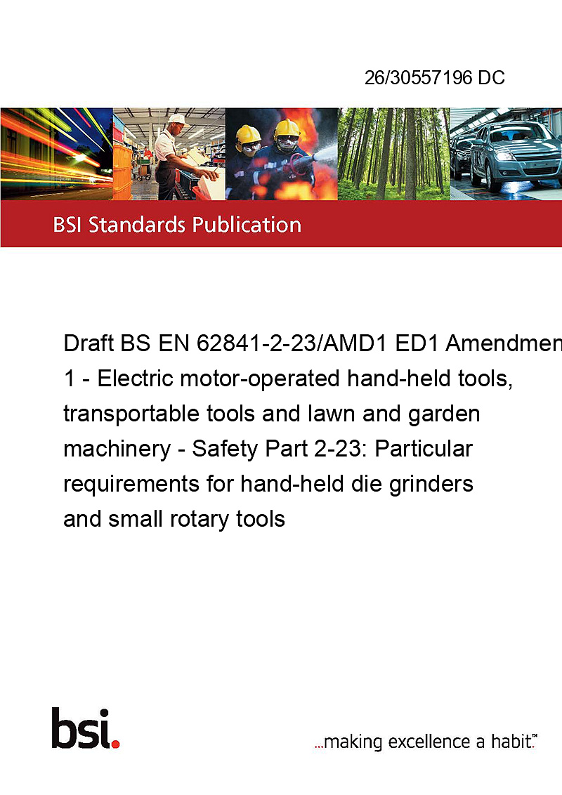 Draft BS EN 62841-2-23/AMD1 ED1 Amendment 1 - Electric motor-operated hand-held tools, transportable tools and lawn and garden machinery - Safety Part 2-23: Particular requirements for hand-held die grinders and small rotary tools