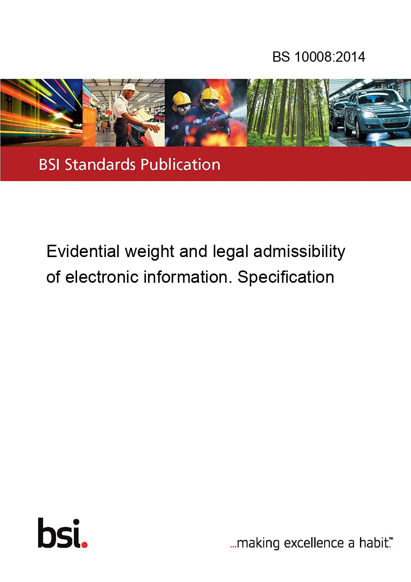 This standard BS 10008:2014 Evidential weight and legal admissibility of electronic information. Specification is classified in these ICS categories: