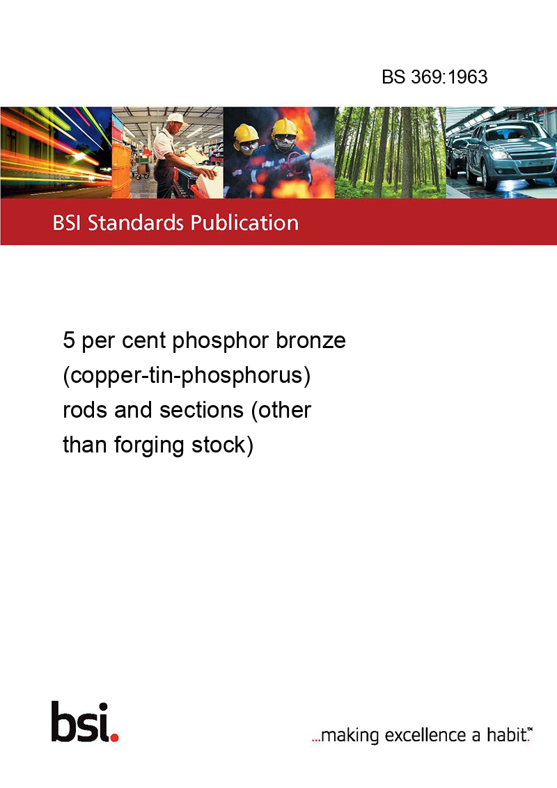 This standard BS 369:1963 5 per cent phosphor bronze (copper-tin-phosphorus) rods and sections (other than forging stock) is classified in these ICS categories: