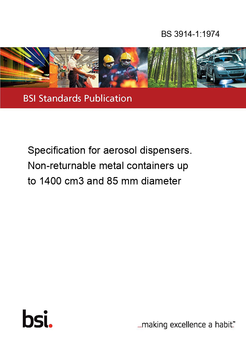 Specifies materials and certain constructional and performance requirements for two groups of non-returnable metal aerosol containers for use with liquefied, compressed or dissolved propellant gases. Group 1 containers with maximum brimful capacity 820 cm3 and internal diameter 75 mm maximum, and Group 2 containers with maximum brimful capacity 1400 cm3 and internal diameter 85 mm maximum.
