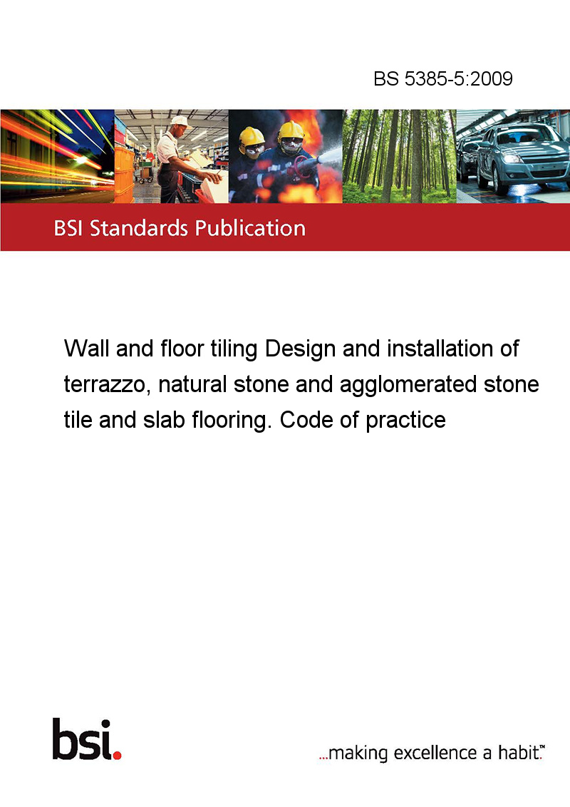 This part of BS 5385 gives recommendations for the design and installation of terrazzo tile and slab and natural stone internal and external floorings, and contains recommendations covering the laying of agglomerated stone, a cast manufactured item containing natural stone that is subsequently sawn to size.