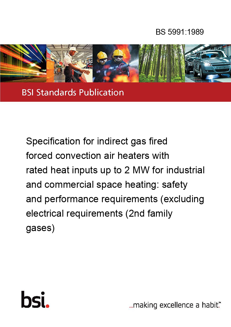 This standard BS 5991:1989 Specification for indirect gas fired forced convection air heaters with rated heat inputs up to 2 MW for industrial and commercial space heating: safety and performance requirements (excluding electrical requirements (2nd family gases) is classified in these ICS categories: