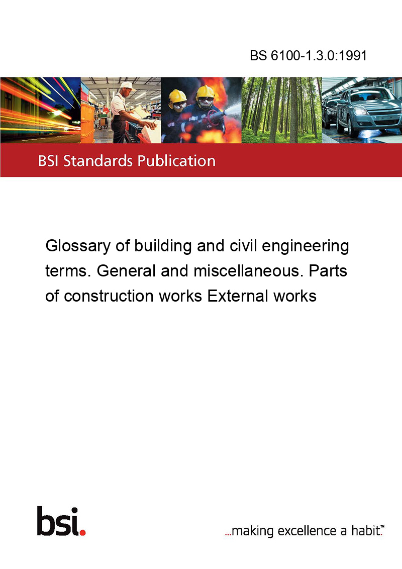 This standard BS 6100-1.3.0:1991 Glossary of building and civil engineering terms. General and miscellaneous. Parts of construction works is classified in these ICS categories: