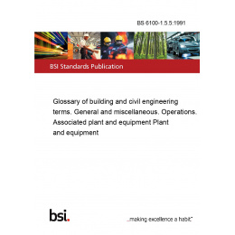 This standard BS 6100-1.5.5:1991 Glossary of building and civil engineering terms. General and miscellaneous. Operations. Associated plant and equipment is classified in these ICS categories: