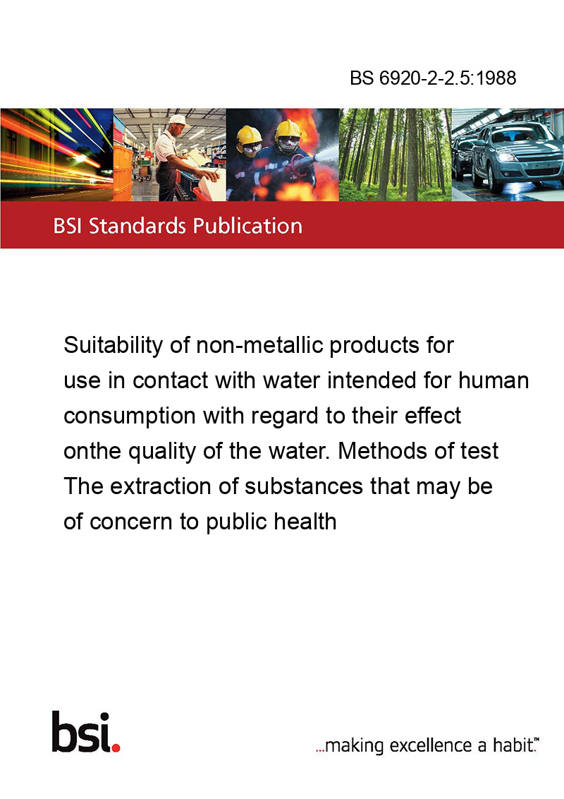 This standard BS 6920-2-2.5:1988 Suitability of non-metallic products for use in contact with water intended for human consumption with regard to their effect onthe quality of the water. Methods of test is classified in these ICS categories: