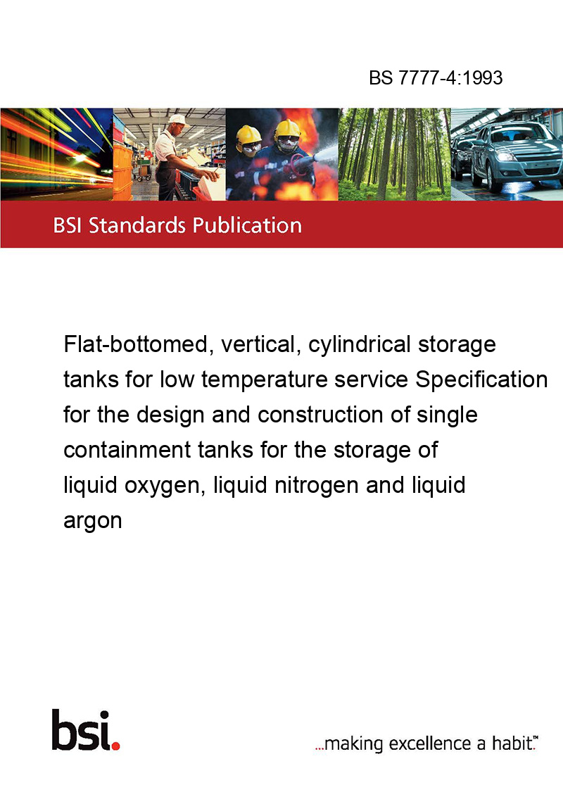 Flat-bottomed, vertical, cylindrical storage tanks for low temperature service Specification for the design and construction of single containment tanks for the storage of liquid oxygen, liquid nitrogen and liquid argon