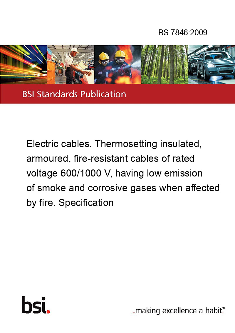 This standard BS 7846:2009 Electric cables. Thermosetting insulated, armoured, fire-resistant cables of rated voltage 600/1000 V, having low emission of smoke and corrosive gases when affected by fire. Specification is classified in these ICS categories: