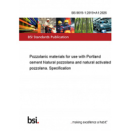 Introducing the BS 8615-1:2019+A1:2026, a comprehensive standard that sets the benchmark for pozzolanic materials used in conjunction with Portland cement. This specification is essential for professionals in the construction and materials industry who are looking to enhance the quality and durability of their cement-based products.