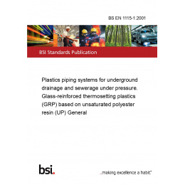 This standard BS EN 1115-1:2001 Plastics piping systems for underground drainage and sewerage under pressure. Glass-reinforced thermosetting plastics (GRP) based on unsaturated polyester resin (UP) is classified in these ICS categories: