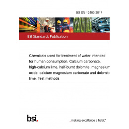 This standard BS EN 12485:2017 Chemicals used for treatment of water intended for human consumption. Calcium carbonate, high-calcium lime, half-burnt dolomite, magnesium oxide, calcium magnesium carbonate and dolomitic lime. Test methods is classified in these ICS categories:
