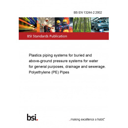 This standard BS EN 13244-2:2002 Plastics piping systems for buried and above-ground pressure systems for water for general purposes, drainage and sewerage. Polyethylene (PE) is classified in these ICS categories: