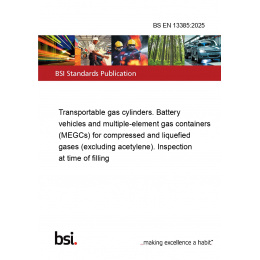 Ensure the utmost safety and compliance with the BS EN 13385:2025 standard, a comprehensive guideline for the inspection of transportable gas cylinders, battery vehicles, and multiple-element gas containers (MEGCs) for compressed and liquefied gases, excluding acetylene. This standard is an essential resource for professionals in the gas industry, providing detailed procedures and requirements to ensure the safe handling and filling of gas containers.
