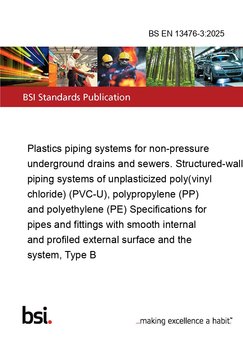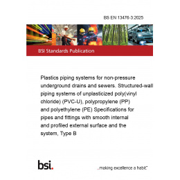 Introducing the BS EN 13476-3:2025, a comprehensive standard that sets the benchmark for plastics piping systems used in non-pressure underground drains and sewers. This standard is essential for professionals in the construction and civil engineering sectors who are looking to ensure the highest quality and reliability in their piping systems.