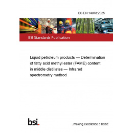 Introducing the BS EN 14078:2025, a comprehensive standard that provides a detailed methodology for determining the fatty acid methyl ester (FAME) content in middle distillates using infrared spectrometry. This standard is an essential tool for professionals in the petroleum industry, ensuring accuracy and consistency in the analysis of liquid petroleum products.