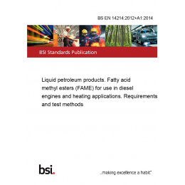 This standard BS EN 14214:2012+A1:2014 Liquid petroleum products. Fatty acid methyl esters (FAME) for use in diesel engines and heating applications. Requirements and test methods is classified in these ICS categories: