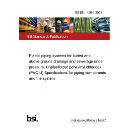 This standard BS EN 1456-1:2001 Plastic piping systems for buried and above-ground drainage and sewerage under pressure. Unplasticized poly(vinyl chloride) (PVC-U) is classified in these ICS categories:
