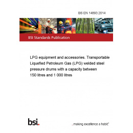 This standard BS EN 14893:2014 LPG equipment and accessories. Transportable Liquefied Petroleum Gas (LPG) welded steel pressure drums with a capacity between 150 litres and 1 000 litres is classified in these ICS categories: