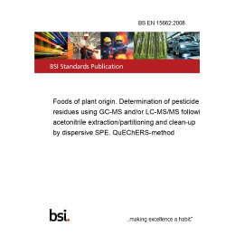 This standard BS EN 15662:2008 Foods of plant origin. Determination of pesticide residues using GC-MS and/or LC-MS/MS following acetonitrile extraction/partitioning and clean-up by dispersive SPE. QuEChERS-method is classified in these ICS categories: