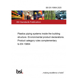 This standard BS EN 16904:2025 Plastics piping systems inside the building structure. Environmental product declarations. Product category rules complementary to EN 15804 is classified in these ICS categories: