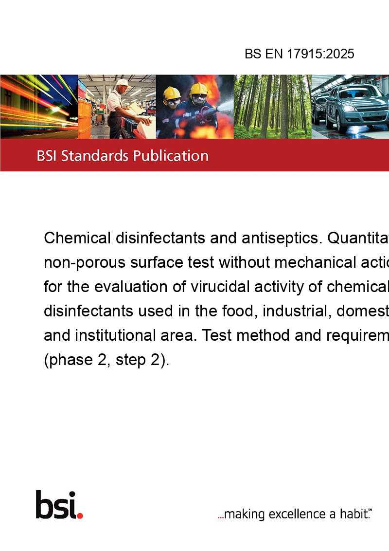 Introducing the BS EN 17915:2025, a comprehensive standard that sets the benchmark for evaluating the virucidal activity of chemical disinfectants and antiseptics. This standard is essential for ensuring the efficacy and safety of disinfectants used across various sectors, including food, industrial, domestic, and institutional areas.