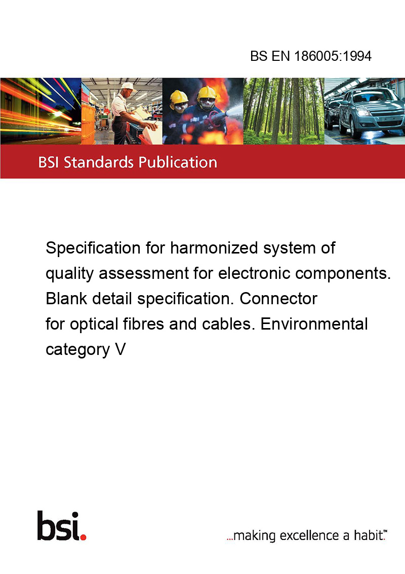 This standard BS EN 186005:1994 Specification for harmonized system of quality assessment for electronic components. Blank detail specification. Connector for optical fibres and cables. Environmental category V is classified in these ICS categories: