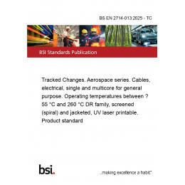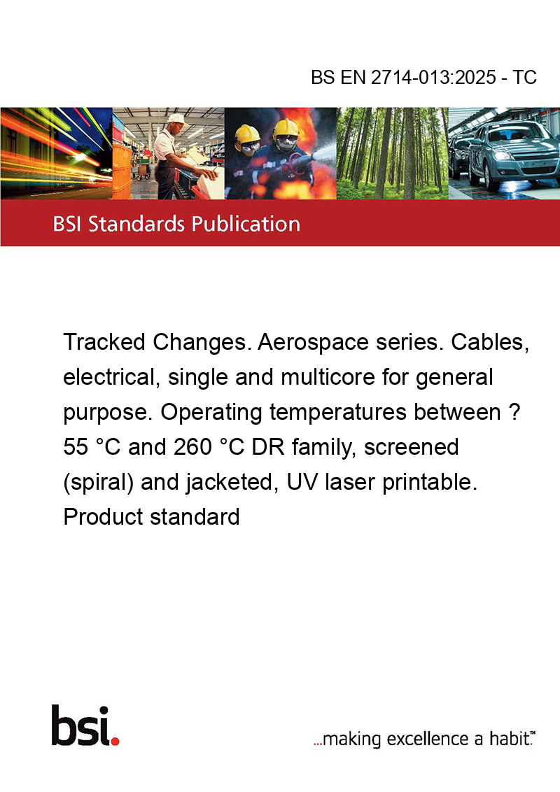 This standard BS EN 2714-013:2025 - TC Tracked Changes. Aerospace series. Cables, electrical, single and multicore for general purpose. Operating temperatures between ? 55 °C and 260 °C is classified in these ICS categories: