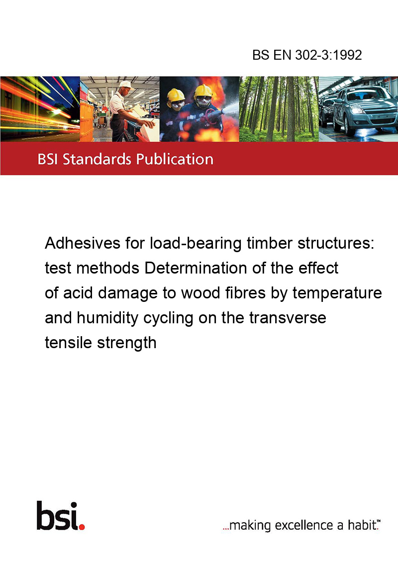Adhesives for load-bearing timber structures: test methods Determination of the effect of acid damage to wood fibres by temperature and humidity cycling on the transverse tensile strength