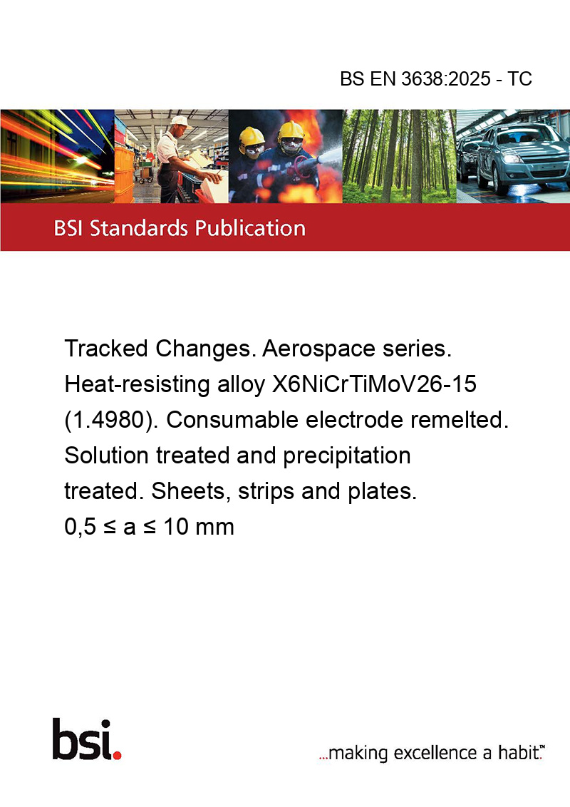 This standard BS EN 3638:2025 - TC Tracked Changes. Aerospace series. Heat-resisting alloy X6NiCrTiMoV26-15 (1.4980). Consumable electrode remelted. Solution treated and precipitation treated. Sheets, strips and plates. 0,5 ≤ a ≤ 10 mm is classified in these ICS categories: