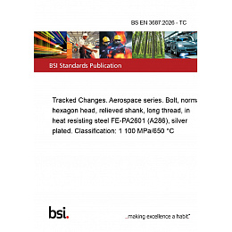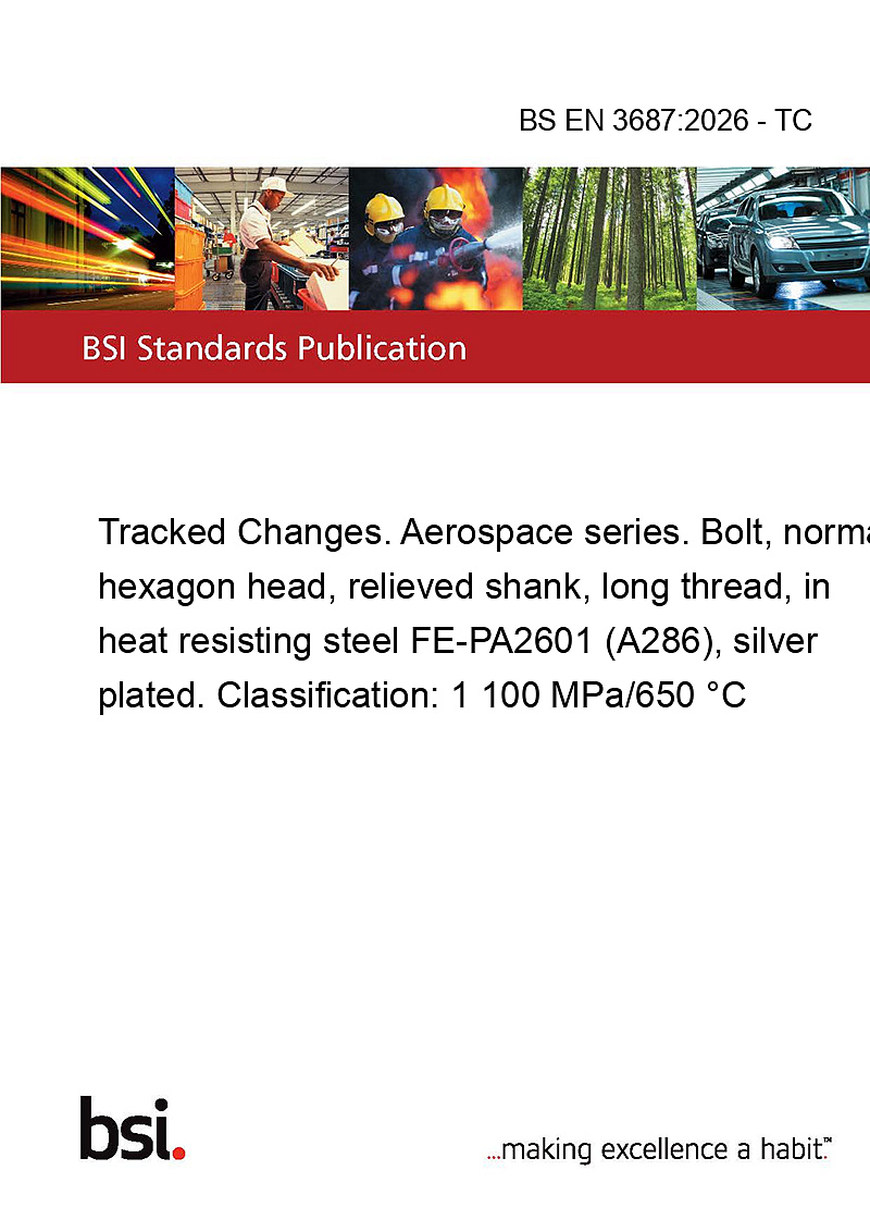 This standard BS EN 3687:2026 - TC Tracked Changes. Aerospace series. Bolt, normal hexagon head, relieved shank, long thread, in heat resisting steel FE-PA2601 (A286), silver plated. Classification: 1 100 MPa/650 °C is classified in these ICS categories: