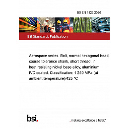Introducing the BS EN 4128:2026, a cutting-edge standard in aerospace engineering that defines the specifications for a bolt with a normal hexagonal head, coarse tolerance shank, and short thread. This bolt is crafted from a heat-resisting nickel base alloy and features an aluminium IVD coating, making it an essential component for high-performance aerospace applications.