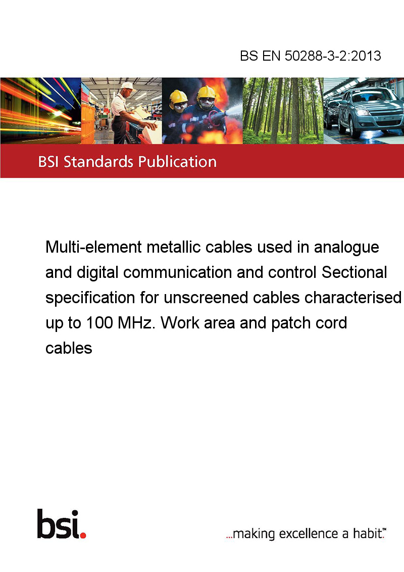 EN 50288-3-2 is a sectional specification for unscreened cables, characterised from 1 MHz up to 100 MHz, to be used as work area cables to connect a telecommunications outlet to the terminal equipment and for patch cord cables to establish connections on a patch panel as defined in EN 50173.