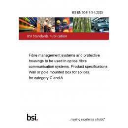 Introducing the BS EN 50411-3-1:2025, a comprehensive standard that sets the benchmark for fibre management systems and protective housings used in optical fibre communication systems. This standard is essential for ensuring the reliability and efficiency of fibre optic networks, providing detailed specifications for wall or pole mounted boxes designed for splices, specifically for category C and A applications.