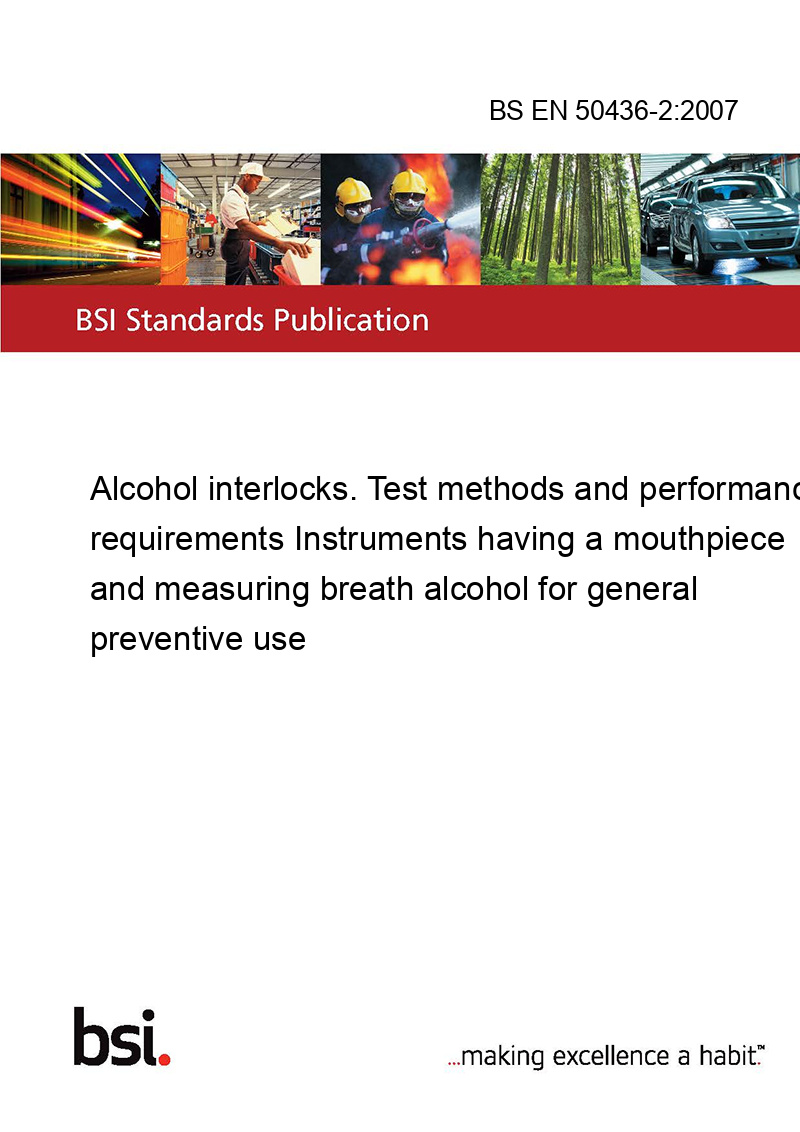 This European Standard specifies test methods and performance requirements for breath alcohol controlled alcohol interlocks having a mouthpiece. It covers alcohol interlocks intended for general preventive use.