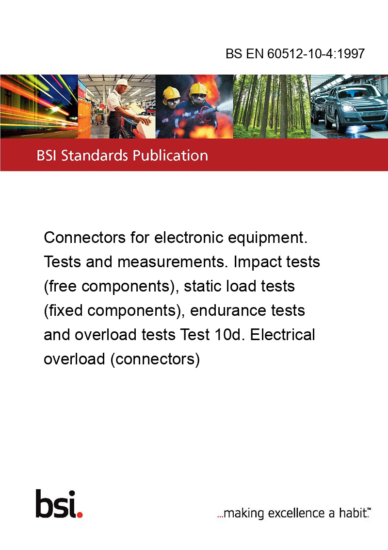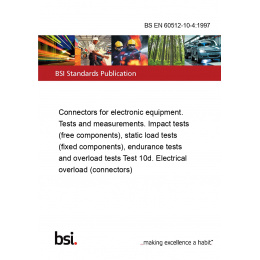 This standard BS EN 60512-10-4:1997 Connectors for electronic equipment. Tests and measurements. Impact tests (free components), static load tests (fixed components), endurance tests and overload tests is classified in these ICS categories: