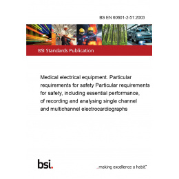 Establishes particular requirements, in addition to the requirements of IEC 60601-2-25, for the safety, including essential performance of recording and analysing single channel and multichannel electrocardiographs. These requirements shall apply particularly to - recording electrocardiographs; - electrocardiographs which are part of other medical electrical equipment, for example exercise testing systems, if this equipment is used to record ECGs for diagnostic purposes; - electrocardiographs which are used as output units for ECG data base management systems or electrocardiographs which are used as output units located at other places than the recording unit; - analyzing electrocardiographs, systems, and computing devices which by means of electronic data processing and pattern recognition derive measurements (e.g. intervals and amplitudes) and diagnostic statements from the ECG; - those parts of patient monitors or other specialised electrocardiographs that are capable of performing the functions of the analyzing electrocardiographs.