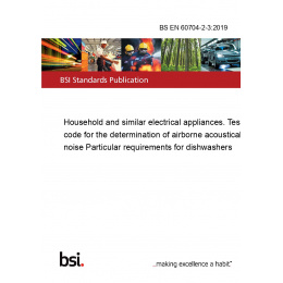 Ensure your dishwashers meet the highest standards of noise performance with the BS EN 60704-2-3:2019 standard. This comprehensive document provides detailed guidelines and test codes specifically designed for the determination of airborne acoustical noise in household and similar electrical appliances, with a particular focus on dishwashers.