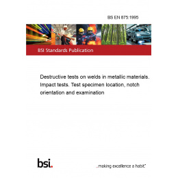 This standard BS EN 875:1995 Destructive tests on welds in metallic materials. Impact tests. Test specimen location, notch orientation and examination is classified in these ICS categories: