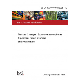 IEC 60079-19:2025 applies to service facilities and covers only those factors related to overhaul, repair or reclamation of Ex Equipment specifically designed for hazardous areas, where the hazard is caused by explosive atmospheres. Ex Equipment can be overhauled, repaired or reclaimed to mitigate deficiencies identified during operation, inspection and maintenance. It does not include: • advice on cable and wiring systems which can require a renewal when the equipment is re-installed; • Repair or overhaul of Type of Protection “m”; • Repair or overhaul of Ex Components; • Requirements for manufacturers who overhaul and repair equipment which they have manufactured This fifth edition cancels and replaces the fourth edition published in 2019. This edition constitutes a technical revision. Users of this document are advised that interpretation sheets clarifying the interpretation of this document can be published. Interpretation sheets are available from the IEC webstore and can be found in the “history” tab of the page for each document. The significance of changes between IEC 60079-19, Edition 5 (2025) and IEC 60079-19, Edition 4 (2019) are as listed in the foreword of this standard.