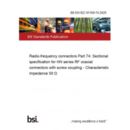 The BS EN IEC 61169-74:2025 is a comprehensive standard that provides detailed specifications for the HN series RF coaxial connectors with screw coupling. These connectors are designed with a characteristic impedance of 50 Ω, making them ideal for a wide range of radio-frequency applications. Released on December 18, 2025, this standard is an essential resource for professionals in the field of RF technology.
