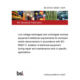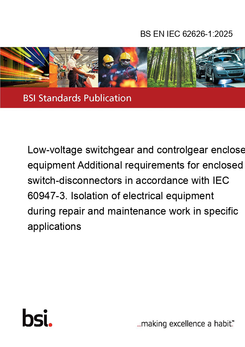 Introducing the BS EN IEC 62626-1:2025, a comprehensive standard that sets forth additional requirements for enclosed switch-disconnectors in accordance with IEC 60947-3. This essential document is designed to ensure the safe isolation of electrical equipment during repair and maintenance work in specific applications, providing peace of mind and enhancing operational safety.