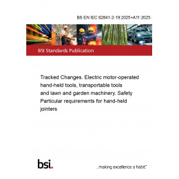 This standard BS EN IEC 62841-2-19:2025+A11:2025 - TC Tracked Changes. Electric motor-operated hand-held tools, transportable tools and lawn and garden machinery. Safety is classified in these ICS categories:
