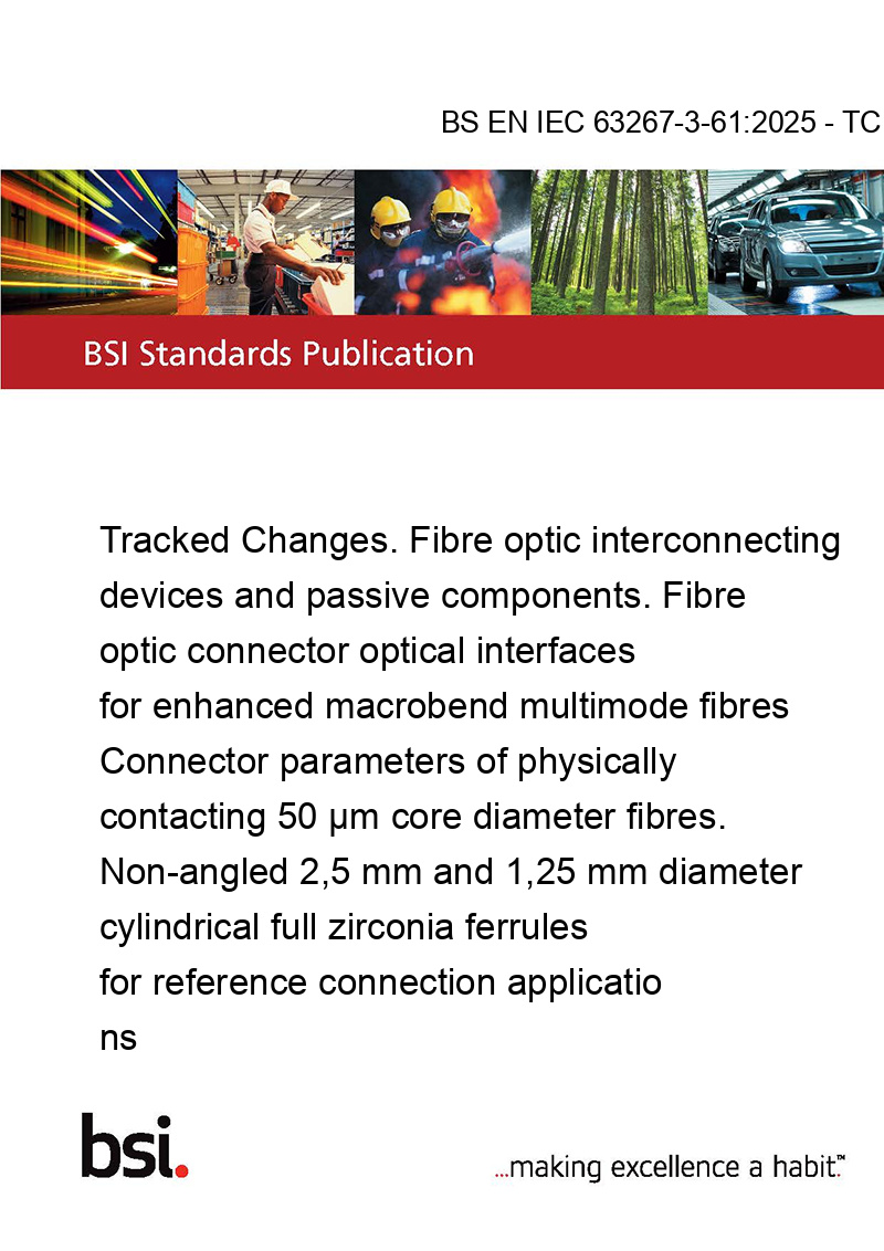 This standard BS EN IEC 63267-3-61:2025 - TC Tracked Changes. Fibre optic interconnecting devices and passive components. Fibre optic connector optical interfaces for enhanced macrobend multimode fibres is classified in these ICS categories: