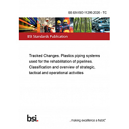 This standard BS EN ISO 11295:2026 - TC Tracked Changes. Plastics piping systems used for the rehabilitation of pipelines. Classification and overview of strategic, tactical and operational activities is classified in these ICS categories: