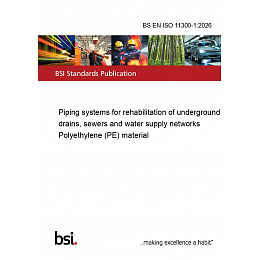 Introducing the BS EN ISO 11300-1:2026, a comprehensive standard dedicated to the rehabilitation of underground drains, sewers, and water supply networks using Polyethylene (PE) material. This standard is an essential resource for professionals in the field of civil engineering, construction, and infrastructure maintenance, providing detailed guidelines and specifications to ensure the effective and sustainable rehabilitation of piping systems.