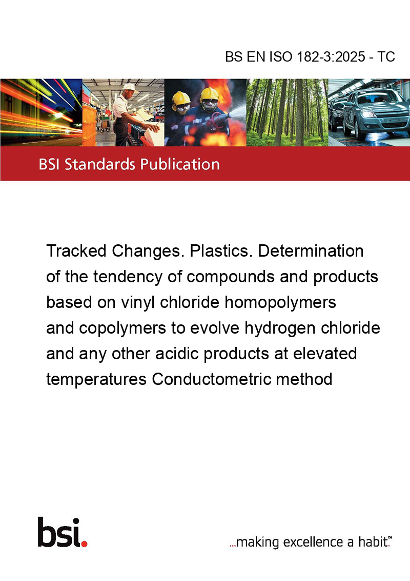 This standard BS EN ISO 182-3:2025 - TC Tracked Changes. Plastics. Determination of the tendency of compounds and products based on vinyl chloride homopolymers and copolymers to evolve hydrogen chloride and any other acidic products at elevated temperatures is classified in these ICS categories: